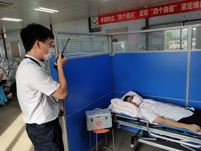 為切實(shí)做好考場安全事故防范,提高考場應(yīng)急處置能力,8月11日下午,水濂考場組織工作人員開展高溫中暑應(yīng)急演練。演練模擬考生候考時(shí)出現(xiàn)高溫中暑的情況,重點(diǎn)圍繞應(yīng)急預(yù)案啟用、醫(yī)療救護(hù)、人員安置等環(huán)節(jié)進(jìn)行了全面演練,檢驗(yàn)和提高了考場安全管控、現(xiàn)場應(yīng)急處置、員工協(xié)同作戰(zhàn)的能力,鍛煉了應(yīng)急隊(duì)伍,積累了實(shí)戰(zhàn)經(jīng)驗(yàn)。